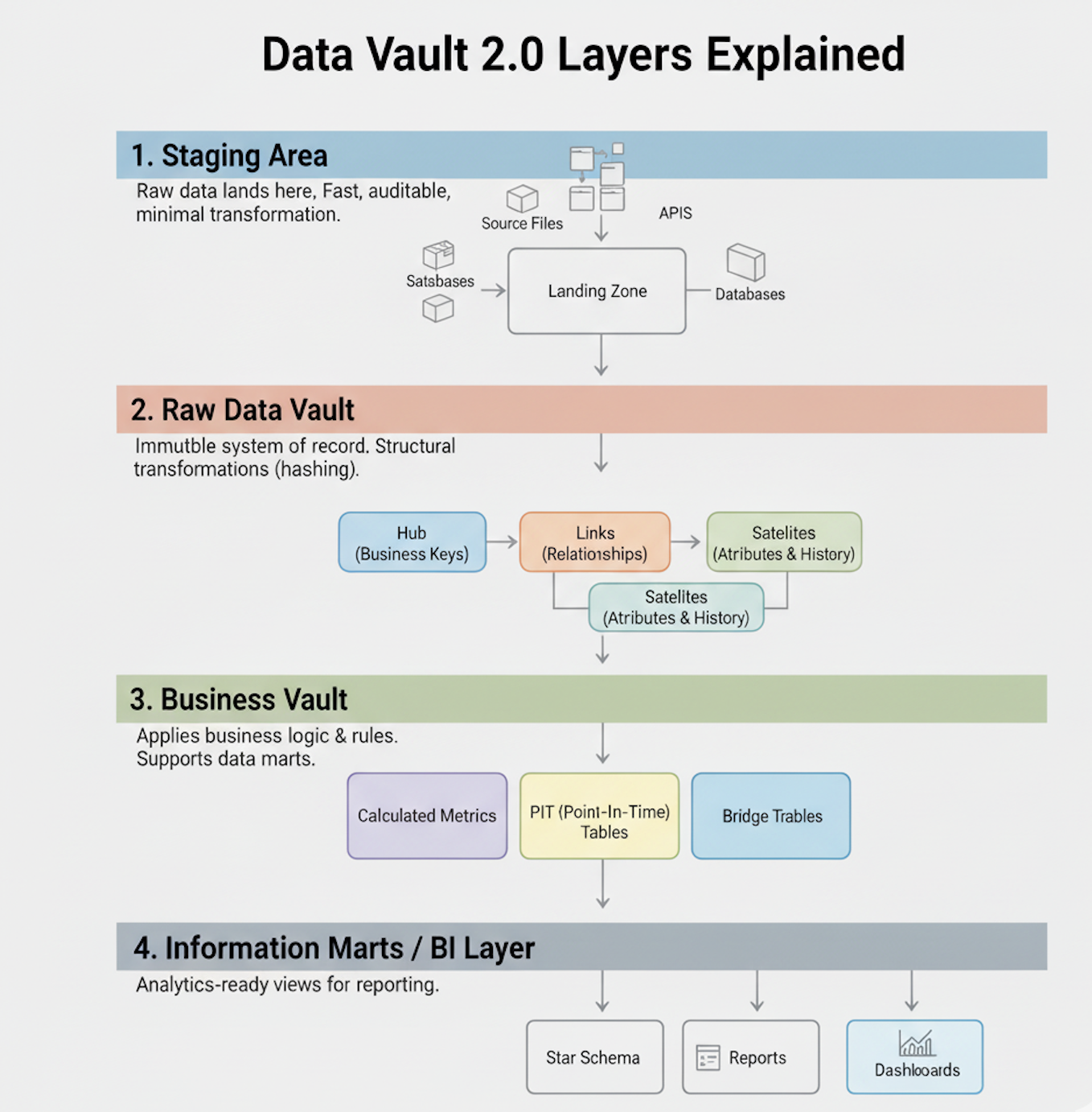 Data Vault 2.0 is not just a schema — it’s an engineering approach to building maintainable, governed, and high-performance data warehouses.